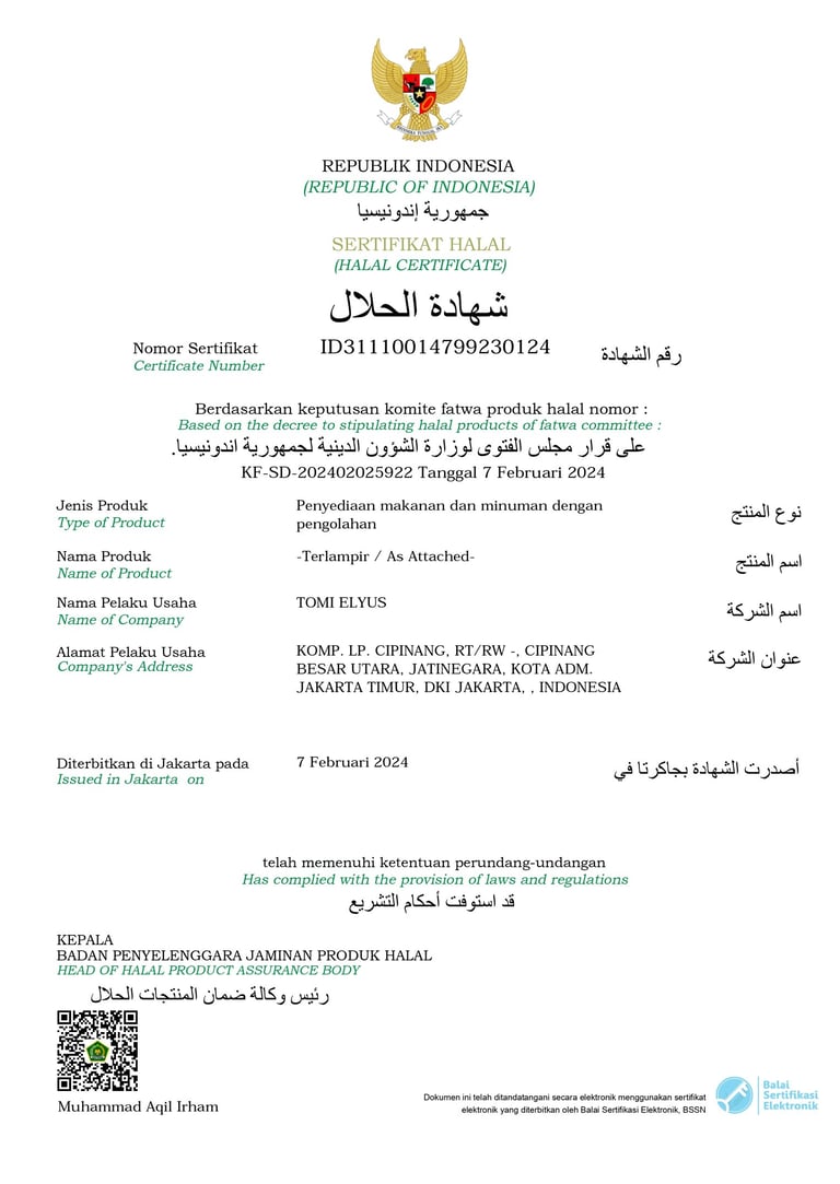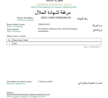 Sertifikat Halal, Laik Hygiene, & Kemenkes