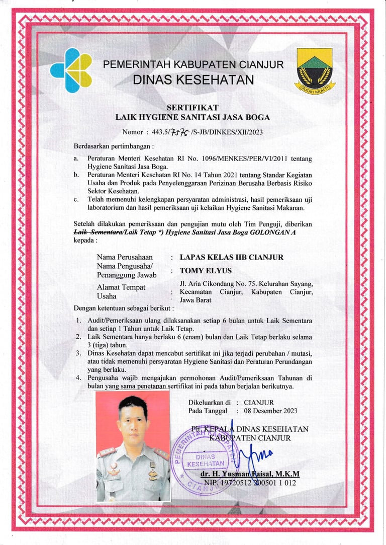 3. mempermudah pengawasan pelayanan makanan di Lapas Cianjur,